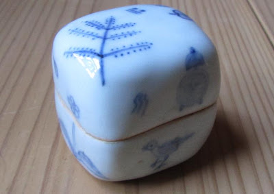 Shigeさん今は、乳歯入れのかわいい小箱を売っているようですよ。ヨーロッパの、どこかの国の習慣でしょうかね。昔のことですから、そんなことは知りませんでしたが、当時、屋根はともかく、縁の下がない家に住んでいたので(笑)、なんとなく取っておきました。磁器の箱は、れっきとした(?)日本人がつくったものです。